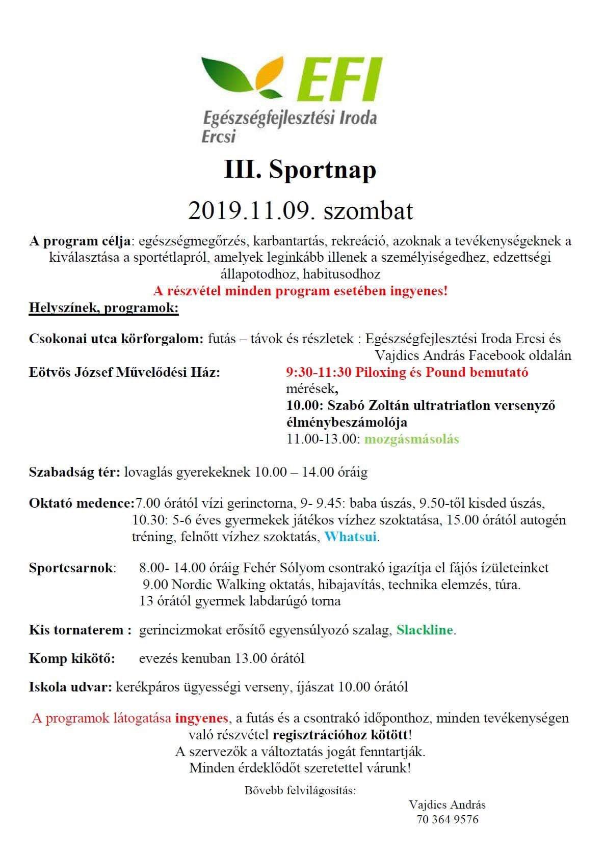 Minden érdeklődöt, mozogni vágyót szeretettel várunk az ingyenes programokon!